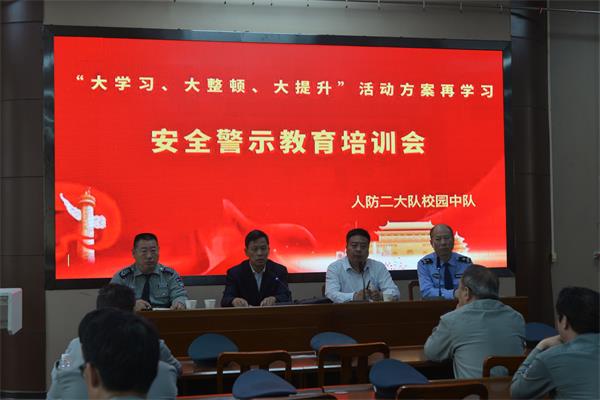 5月23日上午,人防二大隊(duì)在永安東街小學(xué)召開校園保安“大學(xué)習(xí)、大整頓、大提升”方案再學(xué)習(xí)安全警示教育培訓(xùn)會(huì),副大隊(duì)長張運(yùn)洲、曹修穩(wěn)出席,北關(guān)區(qū)小學(xué)、幼兒園近50名保安員參加了會(huì)議。