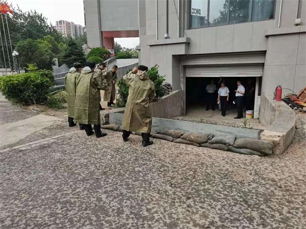 隊(duì)員們快速穿上雨具,對(duì)阻塞排水口進(jìn)行疏通,并將一袋袋沙袋堵住各個(gè)入口,防止雨水滲進(jìn)入地下金庫、車庫。與此同時(shí),隊(duì)員組織營業(yè)大廳內(nèi)人員的疏散和撤離到安全地帶。