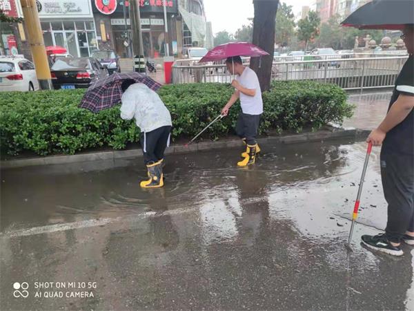 7月21日早上,公司人防一大隊(duì)派駐商頌辦事處隊(duì)員在辦事處張廣杰主任、中隊(duì)長劉桂斌的組織下,經(jīng)過簡短的防汛抗洪誓師動員后,隊(duì)員們立即投入到防汛工作中。為保證路面排水順暢,隊(duì)員冒著傾盆大雨清理下水道上的堵塞物,一點(diǎn)一點(diǎn)將垃圾雜物清理干凈,不一會功夫,低洼處積水散去,路面恢復(fù)正常通行。