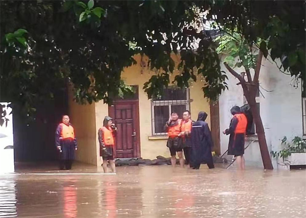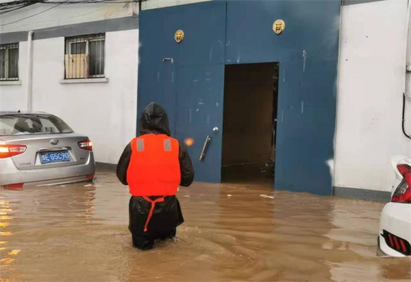 2021年7月22日早上7點左右,安陽幸福路工行憑證庫房值班隊員告急,由于下雨急,積水深,庫房有雨水倒灌情況。鄭芳軍隊長接到救援電話后,憑證庫房是工行的票據(jù)重地,汛情就是命令,立即組織6名防汛突擊隊冒著深及脖子的洪水,手拉救生繩,身穿救生衣,冒著生命危險向憑證庫房挺進(jìn)。到達(dá)后,發(fā)現(xiàn)庫房門口水位上升,他們及時將票據(jù)挪到安全位置,防止浸泡受損,門口用沙袋進(jìn)行封堵,確保了憑證庫房安全??吹桨踩怂麄冇猪樤访坝晏仕谕砩?0點安全返回市行門崗。