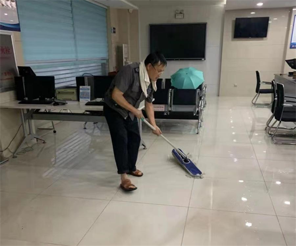 安陽市住房公積金隊員陳建國,凌晨發(fā)現(xiàn)大廳有雨水倒灌,及時用沙袋進(jìn)行加固封堵,清理大廳積水,衣服全部都濕透了,也毫無怨言。