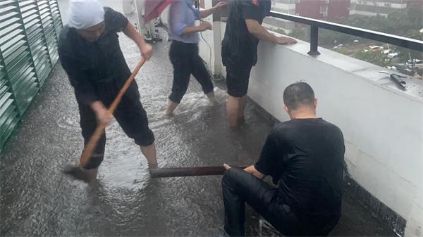 凌晨三點(diǎn),看到雨越下越大,人防一大隊(duì)駐浦發(fā)銀行安陽(yáng)分行崗立刻啟動(dòng)應(yīng)急響應(yīng),巡查銀行各樓層安全。當(dāng)查到四樓時(shí),發(fā)現(xiàn)電井有漏水,而且有越漏越大的趨勢(shì),考慮到電井里全行的電源如果出現(xiàn)故障,整個(gè)銀行將癱瘓,保安隊(duì)員果斷停掉全行電源。在銀行辦公室宋主任和張行長(zhǎng)帶領(lǐng)下,全體隊(duì)員迅速?zèng)_向四樓房頂,由于雨下的太大,這時(shí)的屋頂水已經(jīng)沒過膝蓋。如果不及時(shí)處理,將造成重大損失。但手邊沒有工具,大家只能用錘和鎬將墻上打洞及時(shí)排水。在猛烈的暴雨中,大家掄大錘,用鎬敲,全體隊(duì)員和銀行工作人員共同努力,靠手工在四樓后墻挖出七、八個(gè)洞,終于解除了險(xiǎn)情。