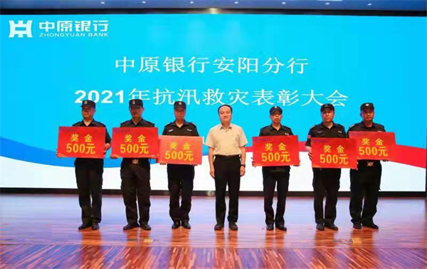 2021年9月23日,中原銀行安陽分行在三樓報告廳隆重召開先進(jìn)表彰大會,分行領(lǐng)導(dǎo)班子、各支行行長和部門經(jīng)理全部參加,會議由分行紀(jì)委書記牛書記主持,表彰在“7.22”防汛救災(zāi)中表現(xiàn)突出的先進(jìn)集體和個人,大會表揚(yáng)了安陽市洹河保安服務(wù)公司駐分行人防四大隊(duì)保安中隊(duì)長田衛(wèi)順、郭海波等6位先進(jìn)個人,并每人發(fā)放獎金500元。表揚(yáng)他們在大災(zāi)面前“困難時刻拉得出,危急時刻頂?shù)蒙希P(guān)鍵時刻靠得住,決戰(zhàn)時刻打得贏”的防汛救災(zāi)精神。