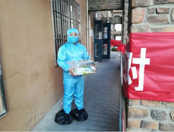 第三天,“這個(gè)時(shí)候,我不上,隊(duì)員該怎么想?我必須讓隊(duì)員心里有底,讓他們安心在這里工作?!编嚰t軍說(shuō)到做到,下午4時(shí)許,他和一名隊(duì)友按照規(guī)定的時(shí)間,戴上口罩、眼罩,穿上防護(hù)服,為隔離在家中的各位住戶送去牛奶、蔬菜等物品。那些在家隔離的居民,看到有人冒著受到傳染的風(fēng)險(xiǎn)給自己送來(lái)生活物品,特別感動(dòng)。