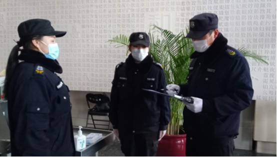 在疫情防控的緊要關(guān)頭,馮鑫江隨時提醒、督導(dǎo)、檢查在崗當(dāng)值隊員個人的防護(hù)情況和防范區(qū)域內(nèi)的消毒情況,并制定防疫期間人員進(jìn)出、車輛進(jìn)出、體溫測量、消毒記錄臺賬,要求所有當(dāng)值隊員在上崗前必須進(jìn)行體溫測量和個人消毒,以達(dá)到疫情期間個人防護(hù)的必要準(zhǔn)備,有效的控制了疫情發(fā)生。每天凌晨1時陪同客戶領(lǐng)導(dǎo)進(jìn)行崗位人員防疫情況巡查,每天白天陪同客戶領(lǐng)導(dǎo)對館內(nèi)所有科室、展廳及取票、通風(fēng)等設(shè)備進(jìn)行檢查消毒,每天下午16時定時向客戶單位匯報特保中隊人員防疫情況信息,客戶領(lǐng)導(dǎo)對特保防疫工作十分滿意。