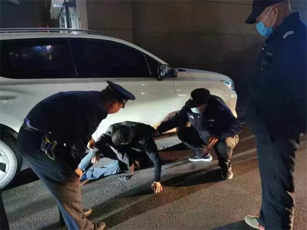 3月29日21:30許,駐龍安區(qū)巡防隊郭國峰、崔志濤、肖鵬、畢治華等隊員巡邏至梅東路與龍圖街西北角處時,借著巡邏車的燈光發(fā)現(xiàn)一輛轎車旁躺著一個人。于是,他們趕忙過去查看,來到近前,發(fā)現(xiàn)一名男子身上散發(fā)出很濃的酒氣。由于該路段沒有路燈,能見度極差,不易被發(fā)現(xiàn),人來車往,極易發(fā)生事故。因該男子已經(jīng)神智不清,無法給他正常交流,崔志濤隨撥打了110,隊員們一邊對該男子進行保護,防止發(fā)生意外,一邊勸離圍觀群眾,防止交通堵塞。