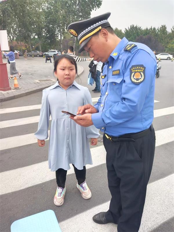 當(dāng)日中午12:25許,駐殷墟商魂廣場(chǎng)保安班班長(zhǎng)郭國(guó)峰正在執(zhí)勤,發(fā)現(xiàn)有一個(gè)大約八歲左右的小女孩站在路旁哭泣,忙上前關(guān)切的詢問(wèn),原來(lái)是女孩和父母走散了。郭國(guó)峰問(wèn),你知道爸爸的電話嗎?小女孩說(shuō)知道。郭國(guó)峰隨用自己的手機(jī)給其家人取得了聯(lián)系。并告訴他和小女孩的位置,同時(shí)匯報(bào)了帶班領(lǐng)導(dǎo)商鄉(xiāng)長(zhǎng)。商鄉(xiāng)長(zhǎng)邊拿起礦泉水讓小女孩喝,邊安慰她。