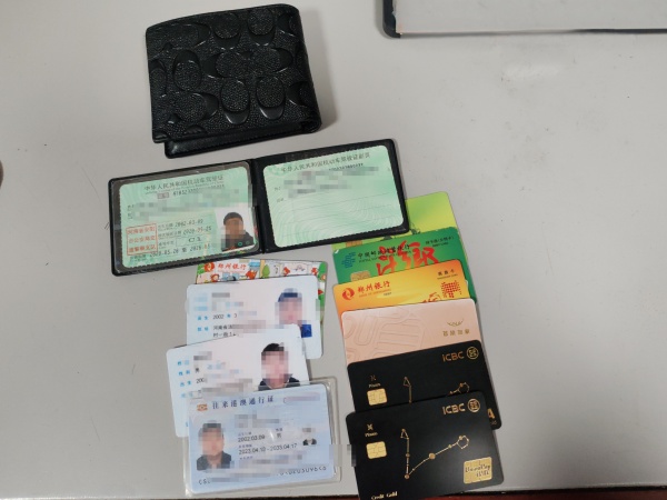 10月4日凌晨1點(diǎn)多,技防分公司夜間巡查人員在中國(guó)銀行永明路支行自助ATM機(jī)巡查時(shí),發(fā)現(xiàn)一個(gè)錢包,經(jīng)過(guò)檢查,錢包內(nèi)有身份證、駕駛證、港澳通行證及多張銀行卡等,巡查人員立即上報(bào)中國(guó)銀行值班人員,然后將錢包交到監(jiān)控中心保管。