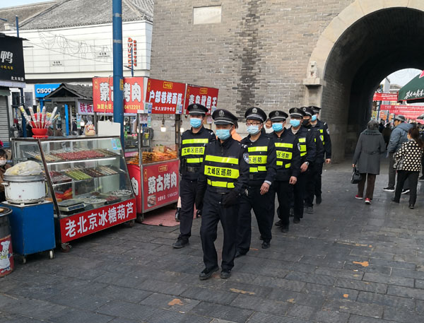 12月3日下午,一場(chǎng)冬雪剛過(guò),氣溫驟降,一隊(duì)巡防隊(duì)員邁著堅(jiān)定步伐走過(guò)古城街頭巷尾,給群眾帶來(lái)了安全感。這是人防一大隊(duì)派駐文峰區(qū)專(zhuān)職巡防隊(duì)員在進(jìn)行日常巡邏。