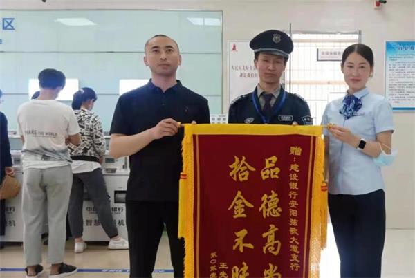 “太感謝你們了,信息年代真是寧愿丟點(diǎn)錢也不能把手機(jī)丟了!手機(jī)儲(chǔ)存的信息太多了,一旦丟了,后果怕不堪設(shè)想。如果不是你們撿到,我也不會(huì)這么快找到手機(jī)?!?5月21日上午11點(diǎn),王先生向人防四大隊(duì)派駐中國(guó)建行弦歌大道支行保安韓永剛送來了一面寫著“拾金不昧 品德高尚”的錦旗,表?yè)P(yáng)他拾金不昧的高尚品德。
