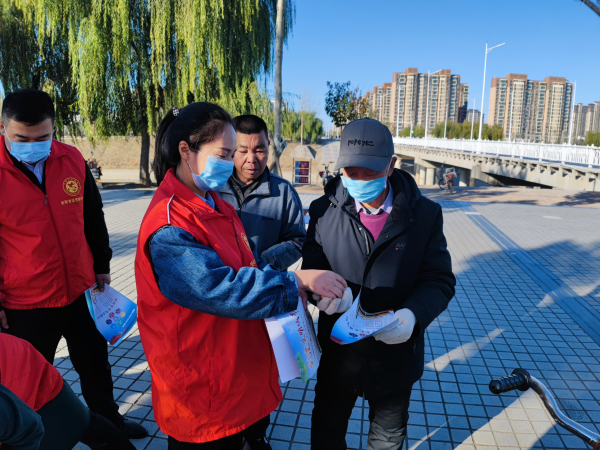 在廣場志愿者們向過往群眾發(fā)放文明禮儀宣傳手冊和消防安全手冊引導大家共建全國文明城區(qū),注意消防安全共享美麗品質安陽。
