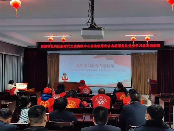 為引導(dǎo)全區(qū)黨員干部從百年黨史中感悟思想偉力,汲取奮進力量,11月29日上午,公司參加由北關(guān)區(qū)文明辦在安陽市地震局五樓召開《安陽市北關(guān)區(qū)新時代文明實踐中心理論政策宣講志愿服務(wù)隊黨史學(xué)習(xí)教育進基層活動》,北關(guān)區(qū)文明辦副主任齊書蘭進行宣講。