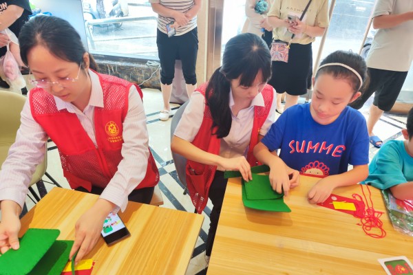 緊接著,志愿者們和孩子們共同制作了紅軍包來(lái)傳承抗戰(zhàn)精神,社區(qū)的孩子為退役老兵佩戴紅領(lǐng)巾,表達(dá)他們對(duì)先輩當(dāng)年保衛(wèi)祖國(guó)英勇戰(zhàn)斗的敬意。