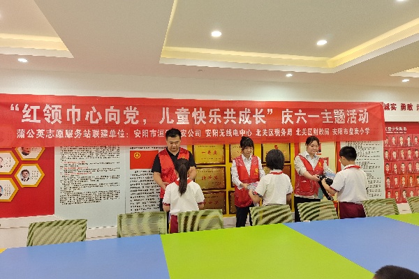 為了迎接“六一”兒童節(jié)的到來,營造良好的未成年成長環(huán)境,讓孩子們感受到社會溫暖,茁壯成長,度過一個開心、快樂的兒童節(jié)。5月29日,公司聯(lián)合蒲公英志愿服務(wù)站在安陽市盤庚小學(xué)開展了“紅領(lǐng)巾心向黨,兒童快樂共成長”的志愿服務(wù)活動。