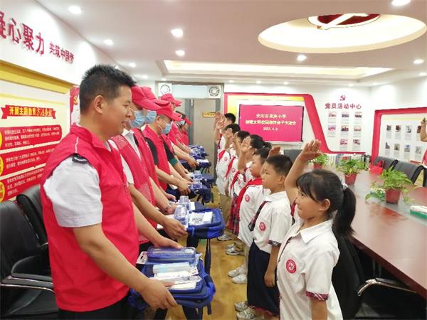 最后志愿者們來(lái)到了黨建活動(dòng)室,在活動(dòng)室為學(xué)校的留守兒童代表送去了書(shū)包、套尺、鋼筆、學(xué)習(xí)本、熒光筆、筆袋等學(xué)習(xí)用品,鼓勵(lì)孩子們努力學(xué)習(xí),學(xué)會(huì)感恩,成長(zhǎng)為一個(gè)對(duì)社會(huì)有用的人。并且希望孩子們克服困難、自強(qiáng)不息,快樂(lè)成長(zhǎng)。