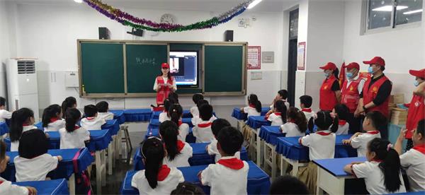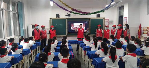 志愿者們首先來(lái)到了盤(pán)庚小學(xué)二年級(jí)五班,為孩子們送上了精神上的饕餮大餐。志愿者們?yōu)閷W(xué)生們帶來(lái)了《焦裕祿》《紅旗渠精神》《紅船》等一段段紅色故事。志愿者們講得精彩,孩子們聽(tīng)得認(rèn)真。偌大的教室里學(xué)生聚精會(huì)神的聆聽(tīng)。通過(guò)此次宣講,紅色精神在孩子們心中生根發(fā)芽,紅色血脈在孩子們身上流淌;紅色基因在孩子們腦海萌發(fā)茂盛。